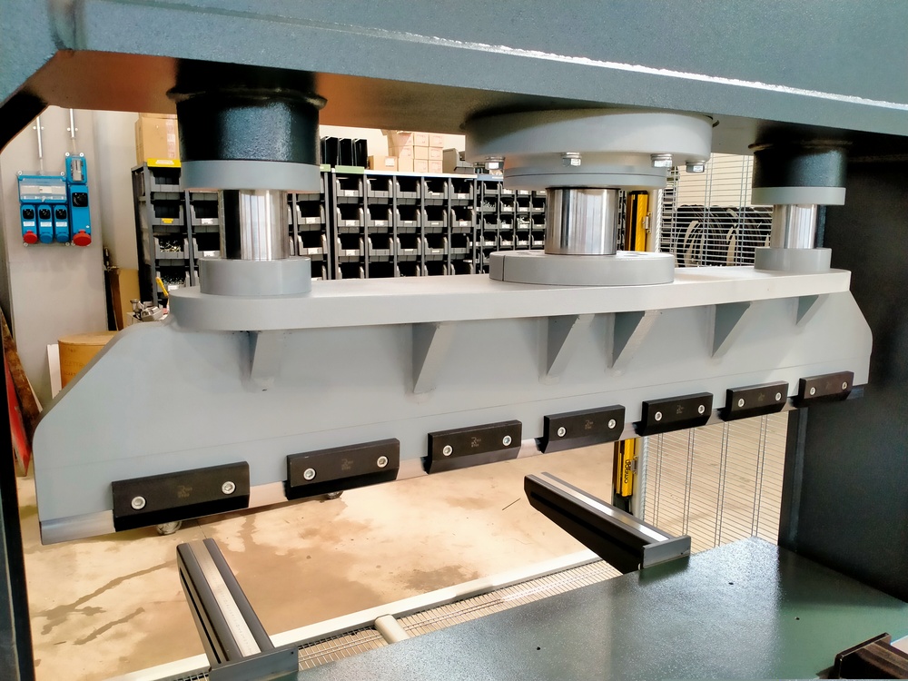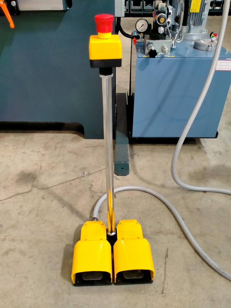 The press is controlled by a double pedal system. It also features a slow cylinder descent speed of under 10 mm/sec. According to safety regulations, this allows operators to have their hands free during the bending cycle. This enables safe and efficient manipulation of the steel plate being bent. Students can learn proper material handling techniques.