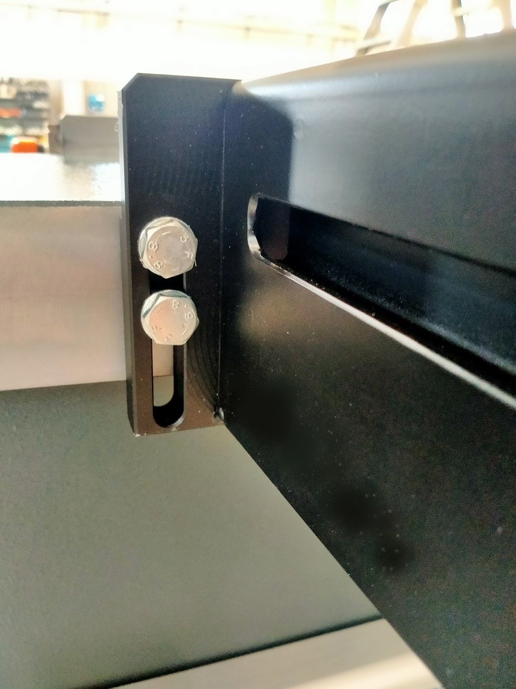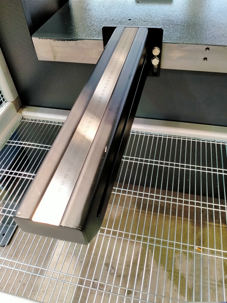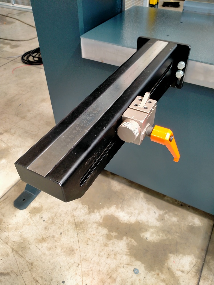 The machine features a pair of front supports. These supports are equipped with a precise millimeter scale. Additionally, an adjustable stop is installed on these supports. This stop allows for micrometric locking, enabling highly accurate bends. Students can learn precise metal forming techniques with this feature.