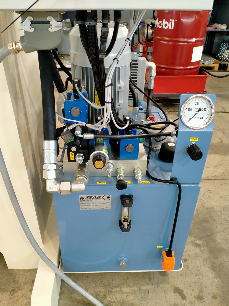 Upon the customer’s request, the machine features a powerful 11 kW hydraulic power unit. This unit achieves a rapid cylinder descent speed of 37 mm/sec and a precise working speed of 5 mm/sec. This ensures both efficient operation and accurate forming results.