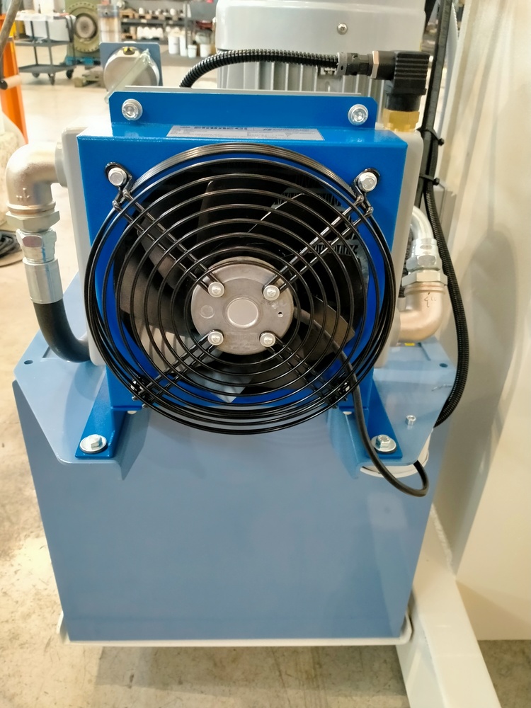 This hydraulic press for sheet metal deformation incorporates an air/oil heat exchanger. This crucial component prevents the hydraulic power unit from overheating. It also allows the hydraulic circuit to operate at its best, ensuring consistent performance and longevity.