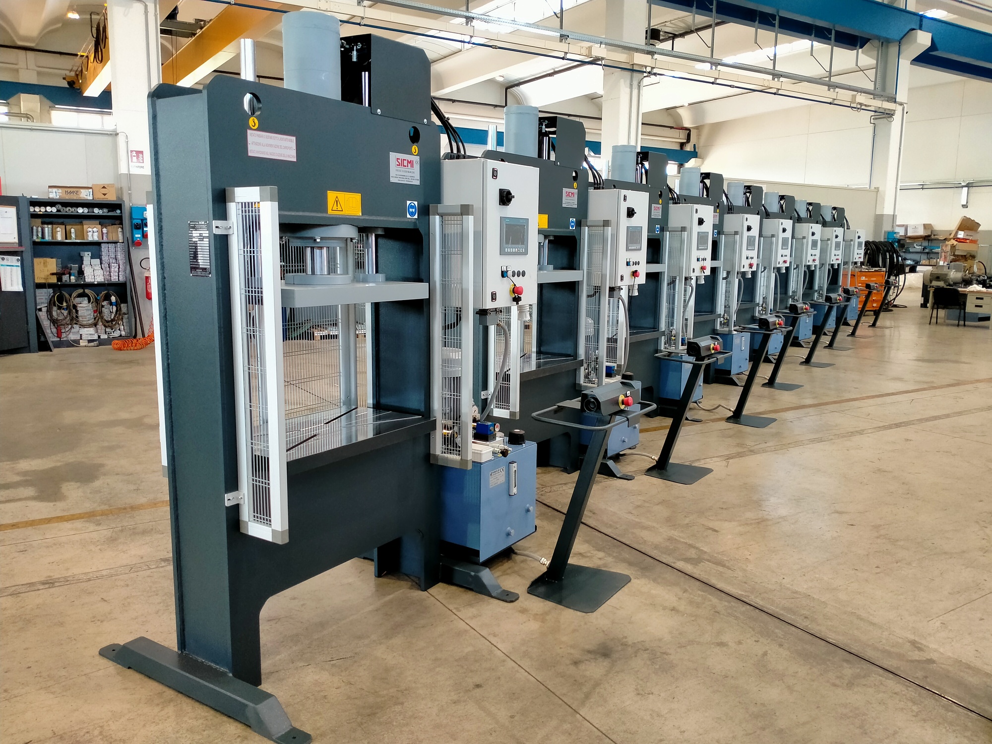 Another batch of eight hydraulic workshop molding presses is ready for shipment to our valued customer in Northern Italy. These electro-hydraulic presses are identical, each delivering a substantial power of 70 tons.