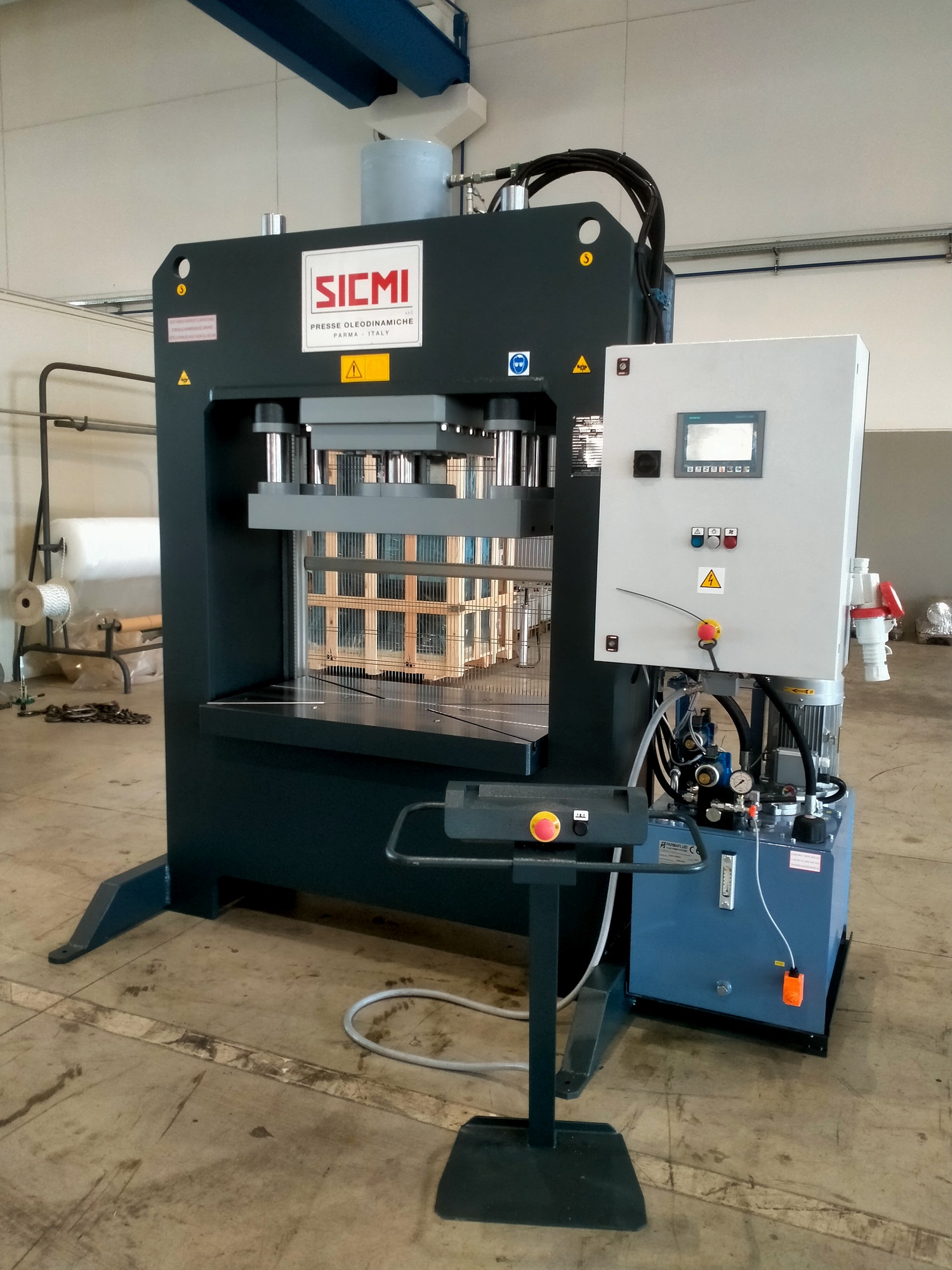The automatic version of the PST electro-hydraulic press can be operated using simultaneous double button control and also features cylinder limit switches for precise stroke control. The rising of the work surface is automatic, further streamlining the production process. This advanced version includes the integration of a reliable Siemens PLC and high-performance Rexroth solenoid valves, ensuring consistent and dependable operation.