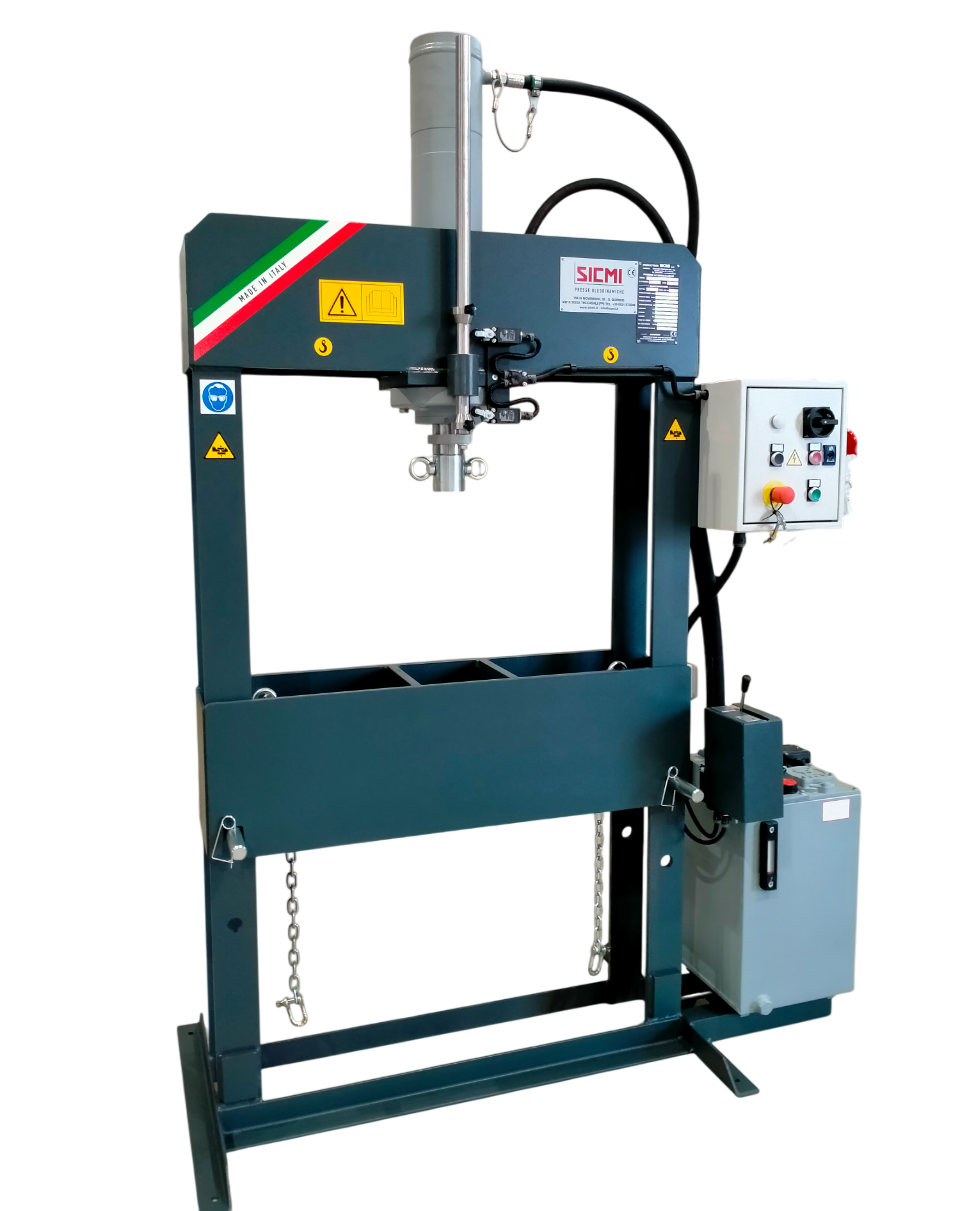 The SICMI – PSS 40 S semi-automatic hydraulic workshop press is a versatile tool perfect for a wide array of tasks within any mechanical workshop. Its capabilities include straightening metal sheets, disassembling bearings and bolts, as well as performing stamping and material shaping operations.
